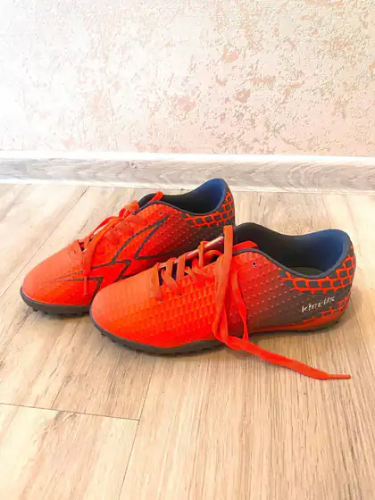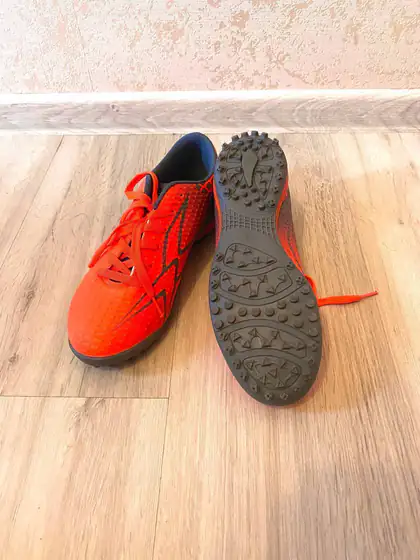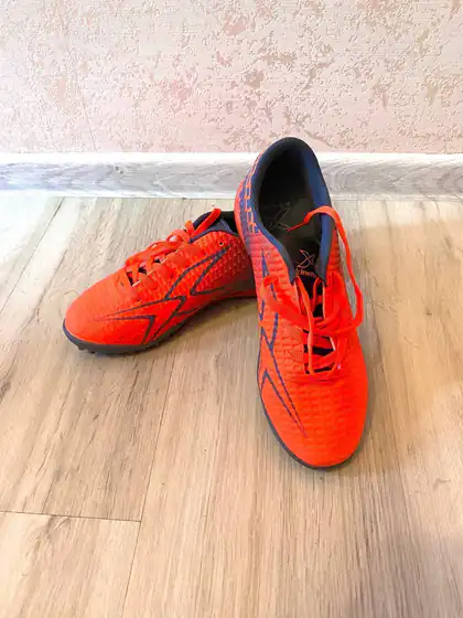 Футбольные бутсы Kinetix, яркие, красно-оранжевые. Новые. Размер 38. Цена 65 лари.