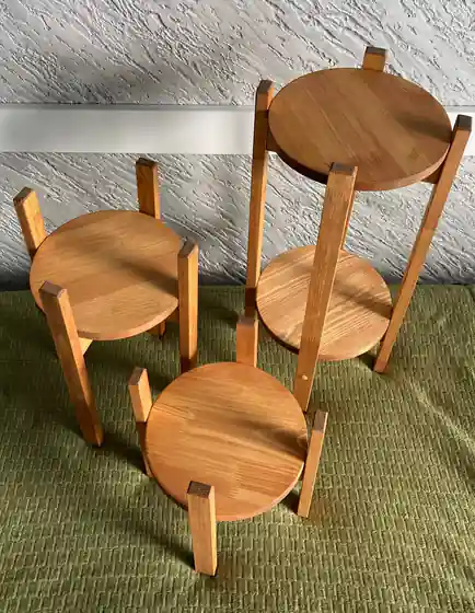 Подставки под цветы Натуральное дерево, сделаны под индивидуальный заказ Конструкция в виде «короны» сверху надёжно удерживает цветочный горшок Цены на фото в лари; торг при покупке всех трёх и при оплате за доллар/евро