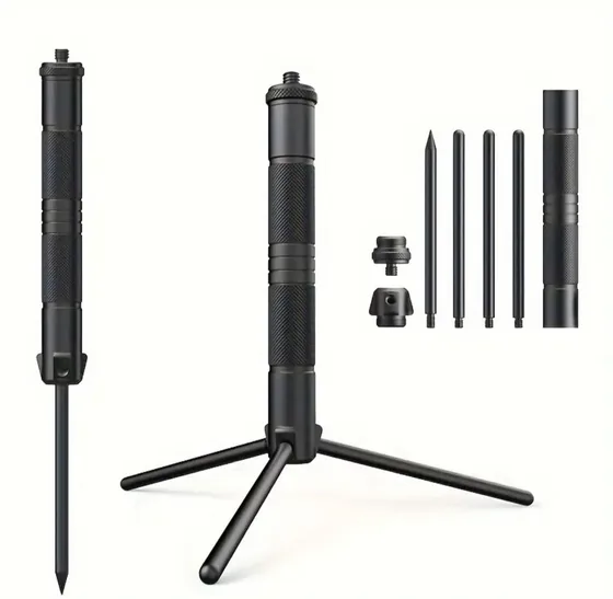 Продам штатив, монопод, треногу под обычный 1/4 крепеж для GoPro, Insta360, и т. п. Разборный, с дополнительным снимаемым штырем в землю для стабилизации. Высота 18см. Алюминий, ножки прячутся в корпус, винты закрываются герметично, легкий. 18 лари ——- и много другого - линк в профиле
