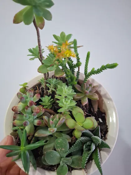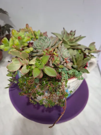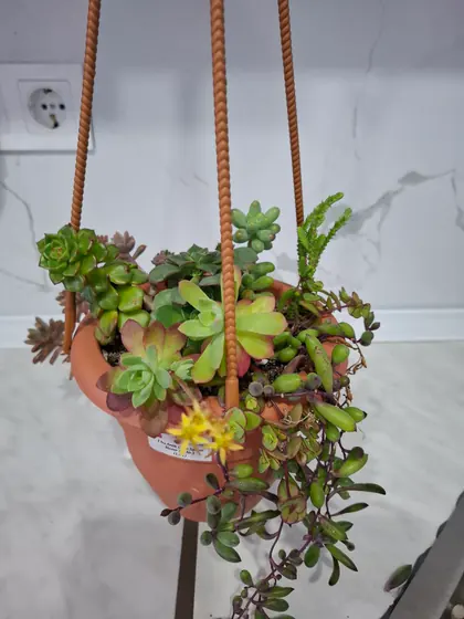 Суккуленты в подвесном горшке 20 Минисадик 15 Кружка 60 лари Хлорофитумы по 10 Плющ 15 Роули по 7 Камнеломка 8