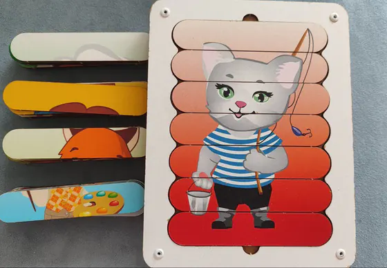 Пазлы-палочки деревянные, 5 рисунков