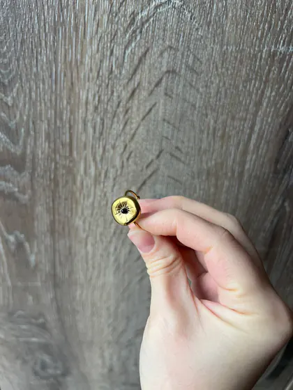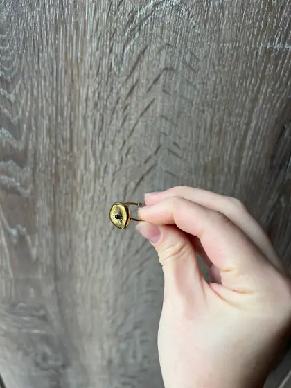 Кольцо из нержавеющей стали с черным камнем Не ношено, регулируемый размер 5 лари