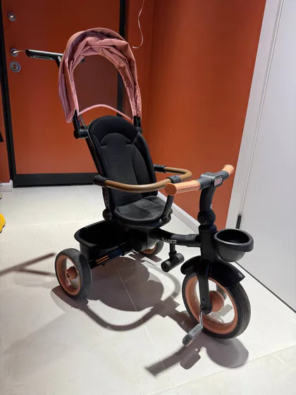 Продается детский трёхколёсный велосипед с рукояткой для управления. - Складывается и помещается в багажник; - Спинка регулируется; - Большой капюшон - Педали переставляются под возраст; Самовывоз рядом с Black sea mall 70 лари