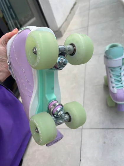 🎀 Продам ролики-квады RIO Roller (размер 37) — как новые! Каталась всего два раза — состояние идеальное, без потертостей и царапин. Цвет — просто мечта: лавандовый + мята 💜💚 В комплект входит: ✨ Оригинальная сумка для переноски (CASṪRA) ✨ Защита: на колени, локти и запястья ✨ Мягкие и устойчивые колёса — идеально для начинающих и катания по набережной Цена за весь комплект: 300 лари Это супервыгодно — новые одни только квады стоят дороже, а тут полный сет «сел и поехал» 🛼💨