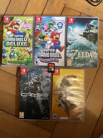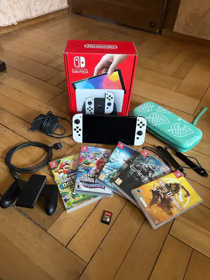 Nintendo switch oled. Полный комплект, в хорошем состоянии. Док станция тоже в комплекте, забыл сфотографировать (она в коробке просто) С играми, что на фото. Только одна игра без коробки. Даже кейс для переноски свича В зуммере такой комплект с играми (без чехла) вам обойдется в 1693 лари. Моя цена 850 лари за весь этот прекрасный набор.