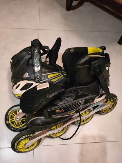 Ролики мужские скоростные Fila FM 100 черно-желтые Рама: 6000 серия, экструдированный алюминий * Колеса: 4xFila 100мм/84A * Подшипники: ABEC 9 * Крепление: Застежка, шнурки, пяточный ремень с микронастраиваемой застежкой * Ботинок: композитный * Гоночные алюминиевые оси Размер: 42.5 200 лари Сумка для роликов Мемеда Абашидзе 54