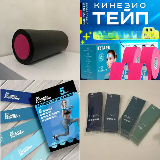 МФР ролл (31см*14,5см) - 10 лар Резинки (эспандеры) для фитнеса 4 шт - 10 лар Кинезио Тейпы 2,5см*5 метров - 10 лар