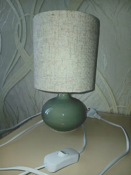 Настольная лампа с тканевым абажуром и керамическим основани