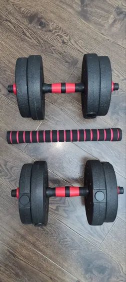 Продам б/у гантели в отличном состоянии. 2 штуки по 7,5 кг . Собираются в маленькую штангу - 80 лар