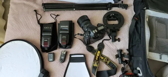 Продам готовый набор фотографа! Удобно для тех, кто хочет попробовать себя в профессиональной фотографии: есть фоторюкзак, 3 накамерные вспышки, синхронизаторы к ним, зонт-софтбокс, софтбокс на вспышку, кронштейн для зонта и стойка. Фотоаппарат Nikon D4 - один из флагманов профессиональной съёмки, производства Япония, с пробегом 88000 кадров (запас затвора 500000), плюс прекрасный объектив -портретник Nikon Nikkor 85 mm 1.8 G. Стоимость фотоаппарат +объектив +зарядное устройство +шнур для ПК - 1999 Gel, остальное оборудование по договорённости.