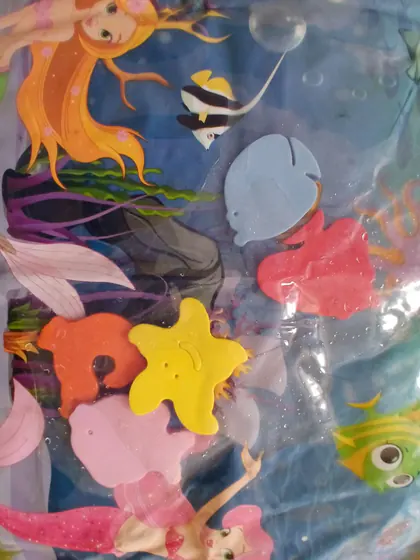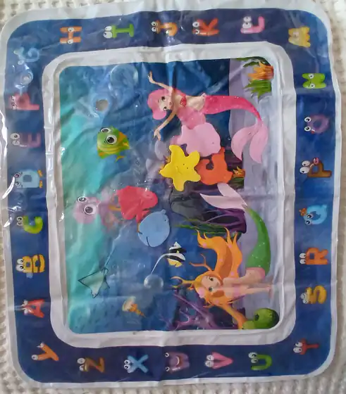 Продам новый развивающий коврик для ребенка от 4 месяцев. Стимулирует ползание. Бортики надуваются. В середину заливается теплая вода - плавают рыбки. Размер 60х50 см. Цена 10 лари. Много другой недорогой детской одежды.