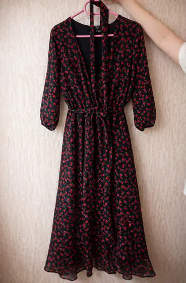 Платье Bershka S, made in Morocco Лёгкое платье на запах с поясом — очень красиво садится по фигуре, подчёркивает талию и создаёт аккуратный силуэт. Полупрозрачная ткань с подкладкой, струится при движении. Принт с мелкими красными цветами на чёрном фоне — выглядит ярко, но при этом универсально. Рукава 3/4, удобная длина миди. Подойдёт и на каждый день, и на выход. Ткань приятная, лёгкая. Состояние отличное. Возможна примерка. 💰15₾ 📍 Батуми, Парк 6 мая 👉 Больше вещей тут: https://t.me/+6DBWOlsFQMw3YTdi