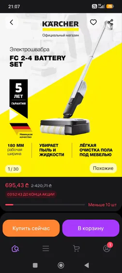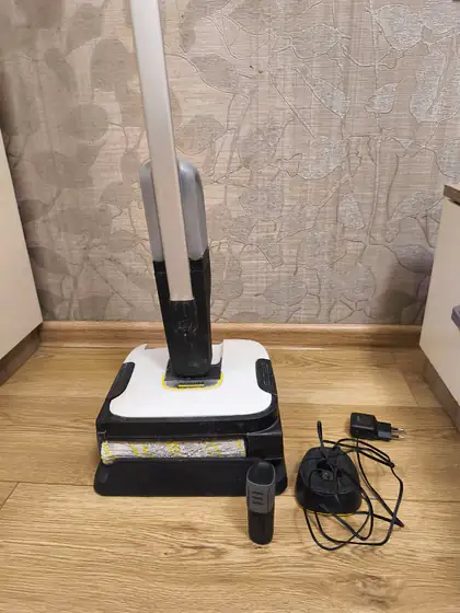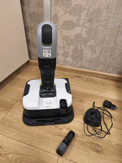Электрошвабра Karcher FC 2-4 Battery Set. Для легкой, быстрой и эффективной уборки: аппарат для влажной уборки пола Керхер FC 2-4 в один прием удаляет как сухие, так и влажные загрязнения. Имеет малый вес (лишь 2,2 кг) и устойчив в вертикальном положении. Он автоматически включается и выключается простым перемещением рукоятки. Максимальное время работы от одного заряда достаточно для очистки площади порядка 70 кв. м. Во время работы роликовая щетка аппарата автоматически увлажняется водой из бачка для чистой воды, что гарантирует равномерную и эффективную очистку твердых напольных покрытий. Электрошвабра для уборки Karcher очищает пол вплотную к стенам и эффективно собирает волосы благодаря специальному встроенному фильтру. Подача воды идёт через раз, но это не мешает уборке совершенно. На Багратиони есть сервис - лучше туда на чистку и мелкий ремонт отдать. Продаю за символическую цену в 150 лари
