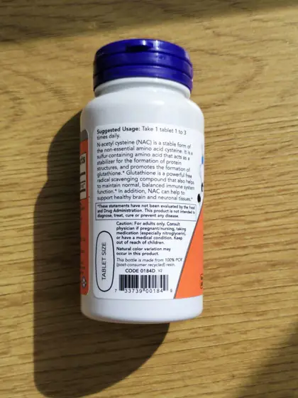 NAC (N-ацетил-цистеин) – 60 таблеток по 1000 мг Новая, запечатанная упаковка, доставлена с iHerb, срок годности до 2028 года. Одна из наиболее многообещающих добавок против старения с очень широким перечнем положительных эффектов: – улучшает настроение и работу мозга (за счёт регуляции уровней глутамата и глутатиона), – снижает уровень хронического воспаления (в том числе за счёт снижения уровня гомоцистеина в крови), – повышает фертильность, – облегчает симптомы хронических болезней лёгких, – облегчает синдром отмены при отказе от курения и иных вредных привычек. 🏷 60 лари