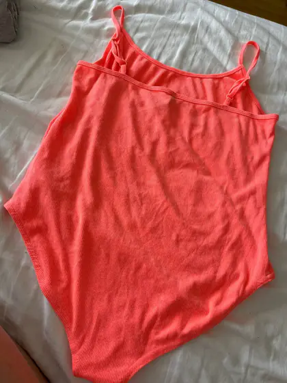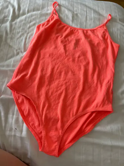 Боди(одето один раз как новое) цвет ярко розовый камера не передает) Размер xl(супер тянется)и на ML будет отлично 6лари