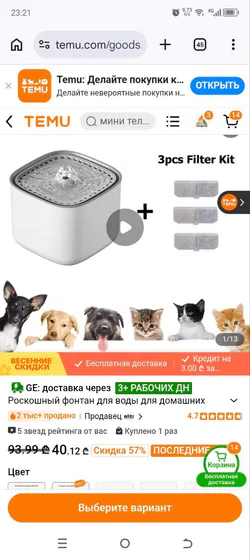 Фильтрующий фонтан для домашних животных