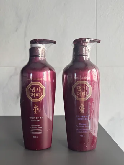 Продам срочно новый корейский набор по уходу за волосами Большой объем (500 мл и 500 мл) За 85 лари. По цене iherb, как и покупала Подходит для всех типов волос -Травяной шампунь для здорового сияния Daeng Gi Meo Ri Shampoo For All Hair Types -Питательный кондиционер для всех типов волос Daeng Gi Meo Ri Conditioner For All Hair Types, 500мл