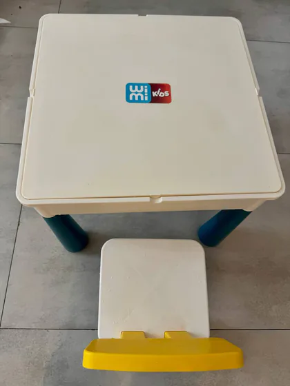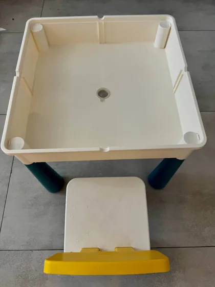 Продаётся детский столик-трансформер WiMi со стульчиком ✔ Можно играть с водой и песком (есть слив) ✔ Двусторонняя столешница — гладкая + для конструктора ✔ Подходит для рисования, занятий и игр ✔ Легко разбирается и собирается ✔ Состояние отличное (есть небольшая царапина) Размеры: 52 × 52 × 46 см Цена: 70 лари