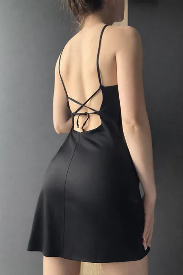 Чёрное платье-комбинация