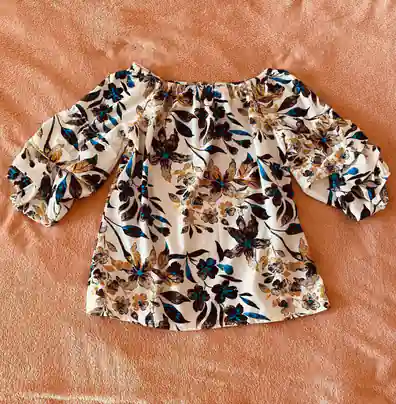 Блузка с красивым узором и сборками на рукавах, р-р S-M. Цена 10 лари.