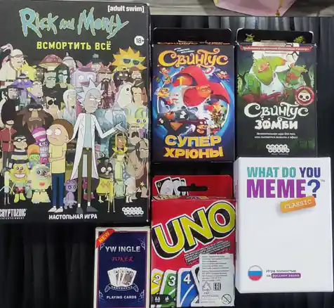 Настольные игры: Rick and Morty, Свинтус, Uno, What do you m