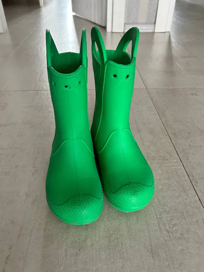 Сапоги Crocs зелёные J3 детские - 45 лари 34-35 размер Крокс для мальчика или для девочки Почти новые, оказались маловаты, надели пару раз. Удобнее и легче, чем резиновые сапоги.