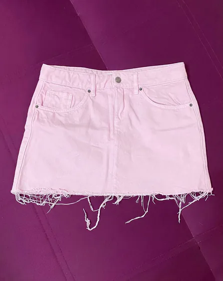 Мини юбка французского бренда Don’t Call Me Jennifer. Плотная джинса отличного качества, красивый нежно-розовый цвет. Размер S-M. Цена 25 лари.