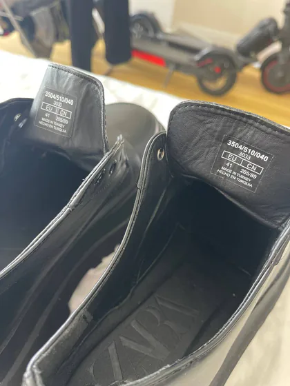 Ботинки ZARA Обуты один раз не подошел размер в идеальном состоянии но есть один нюанс на последнем фото,внутри на обоих пятках оторван кусочек стельки,это никак не влияет на носку можно приклеить ,проста не стала этого делать Размер 41(на 40мне великоваты) 12лари Больше товаров в профиле