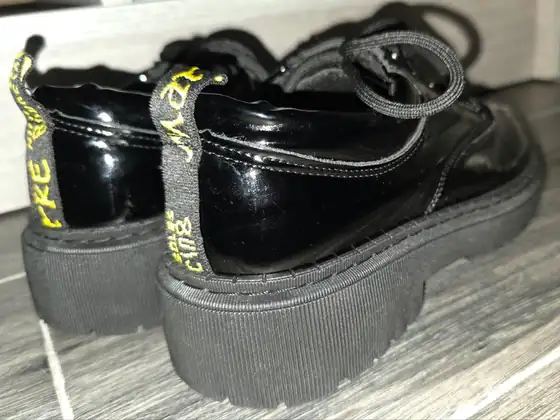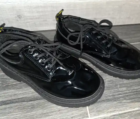 Продаю обувь Лакированные туфли, 39 размер. Подошва крепкая, но удобная при ходьбе, не разносится, отслоек нет. - 20 лари