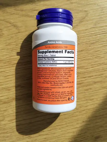 NAC (N-ацетил-цистеин) – 60 таблеток по 1000 мг Новая, запечатанная упаковка, доставлена с iHerb, срок годности до 2028 года. Одна из наиболее многообещающих добавок против старения с очень широким перечнем положительных эффектов: – улучшает настроение и работу мозга (за счёт регуляции уровней глутамата и глутатиона), – снижает уровень хронического воспаления (в том числе за счёт снижения уровня гомоцистеина в крови), – повышает фертильность, – облегчает симптомы хронических болезней лёгких, – облегчает синдром отмены при отказе от курения и иных вредных привычек. 🏷 60 лари