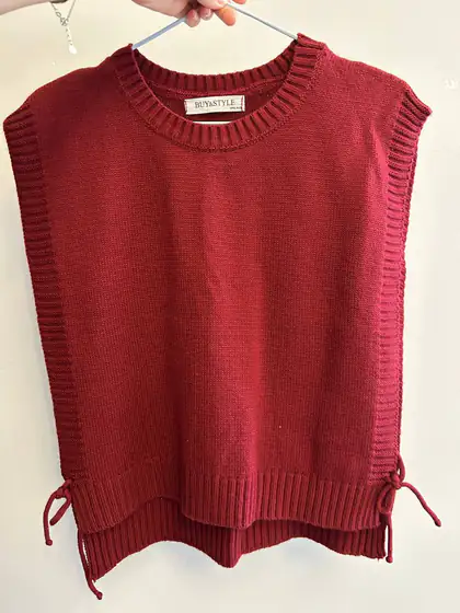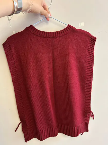 жилет вязаный на завязках по бокам безразмерный, в составе акрил, носился 2 раза, состояние нового 20 gel
