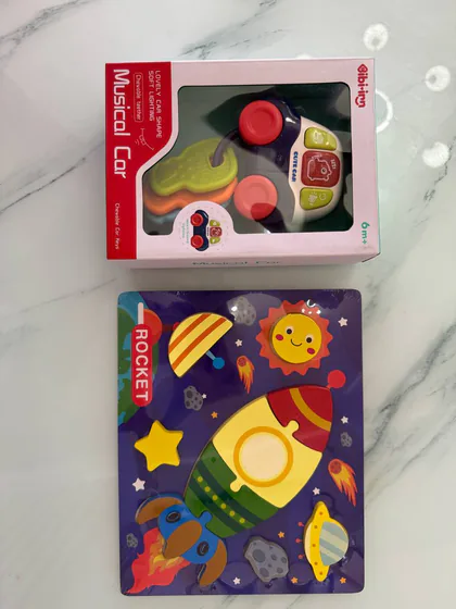 Продам детские игрушки . Новые в упаковках .Музыкальная машинка погремушка и деревянный пазл . Предлагайте цену
