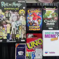 Настольные игры: Rick and Morty, Свинтус, Uno, What do you m