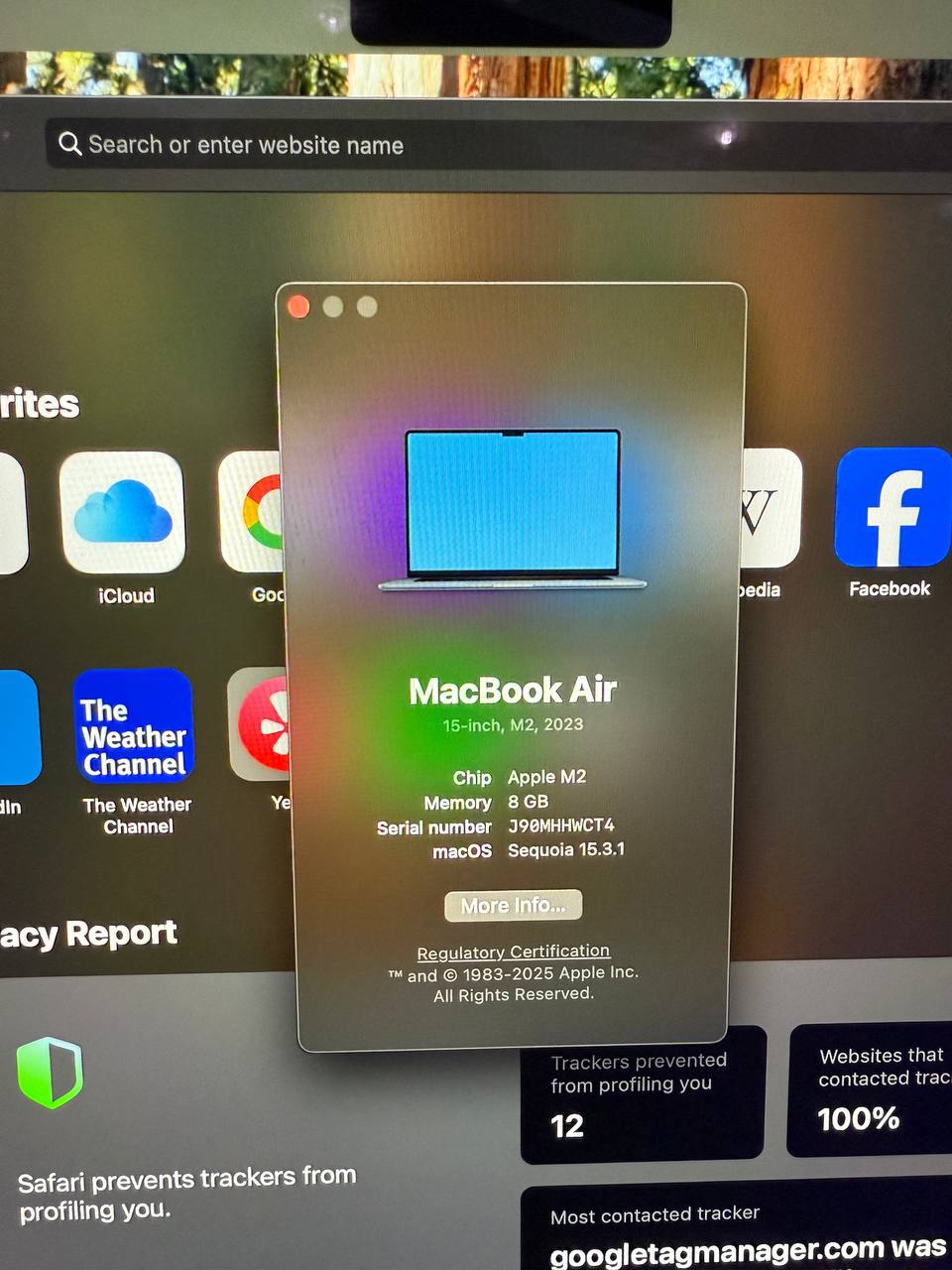 Macbook air 2023 15 inch m2 Power 99% Cycle 60 1999gel