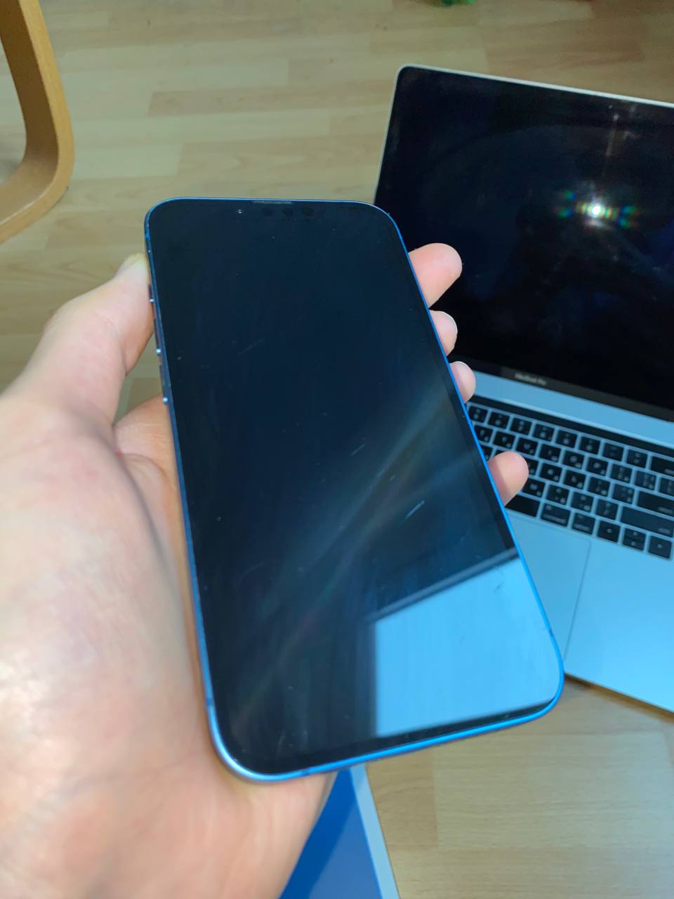 Продам iPhone 13. 830 лари • 128 GB, цвет синий, работает отлично. • Отдаю полный комплект с коробкой и зарядкой • Есть маленькие царапины на экране, почти не видны. • Батарея 74%, держит заряд, в ремонте никогда не был.