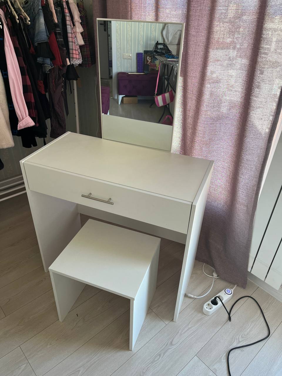 Стол для макияжа с зеркалом, размер столешницы 82х39 см, высота 75 см, зеркало 40х55 см, есть ящик, табуретка, состояние отличное - 70 GEL столик легко разбирается и собирается, не будет проблем с транспортировкой