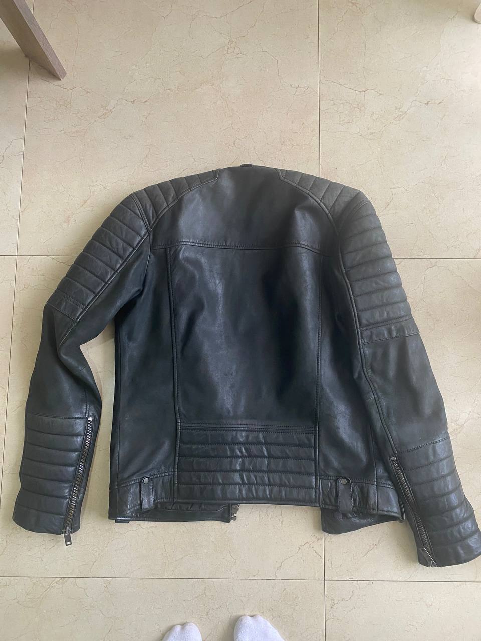 Продам куртку из натуральной кожи. Состояние очень хорошее: вся фурнитура целая, без сильных трещин и потертостей. Есть незначительные следы повседневной носки. Размер: 46. Цена: 170 лари, разумный торг возможен.