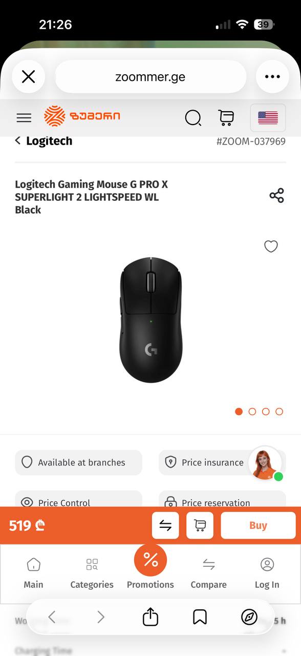 Игровая мышь Logitech PRO X SUPERLIGHT 2 В идеале, покупал 2 месяца назад Есть гарантия и чек Цена 300 лари
